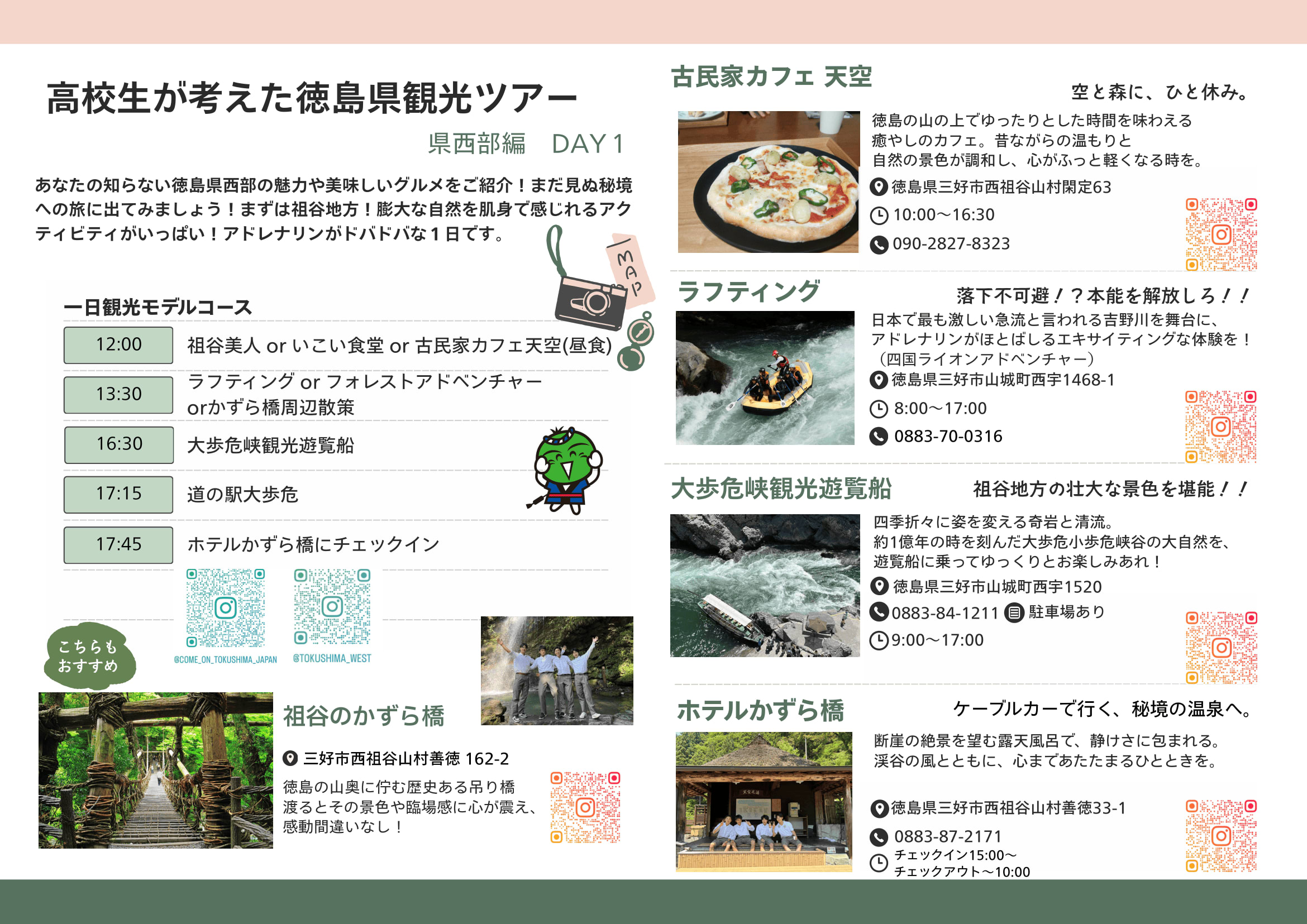 ラフティング or フォレストアドベンチャー orかずら橋周辺散策