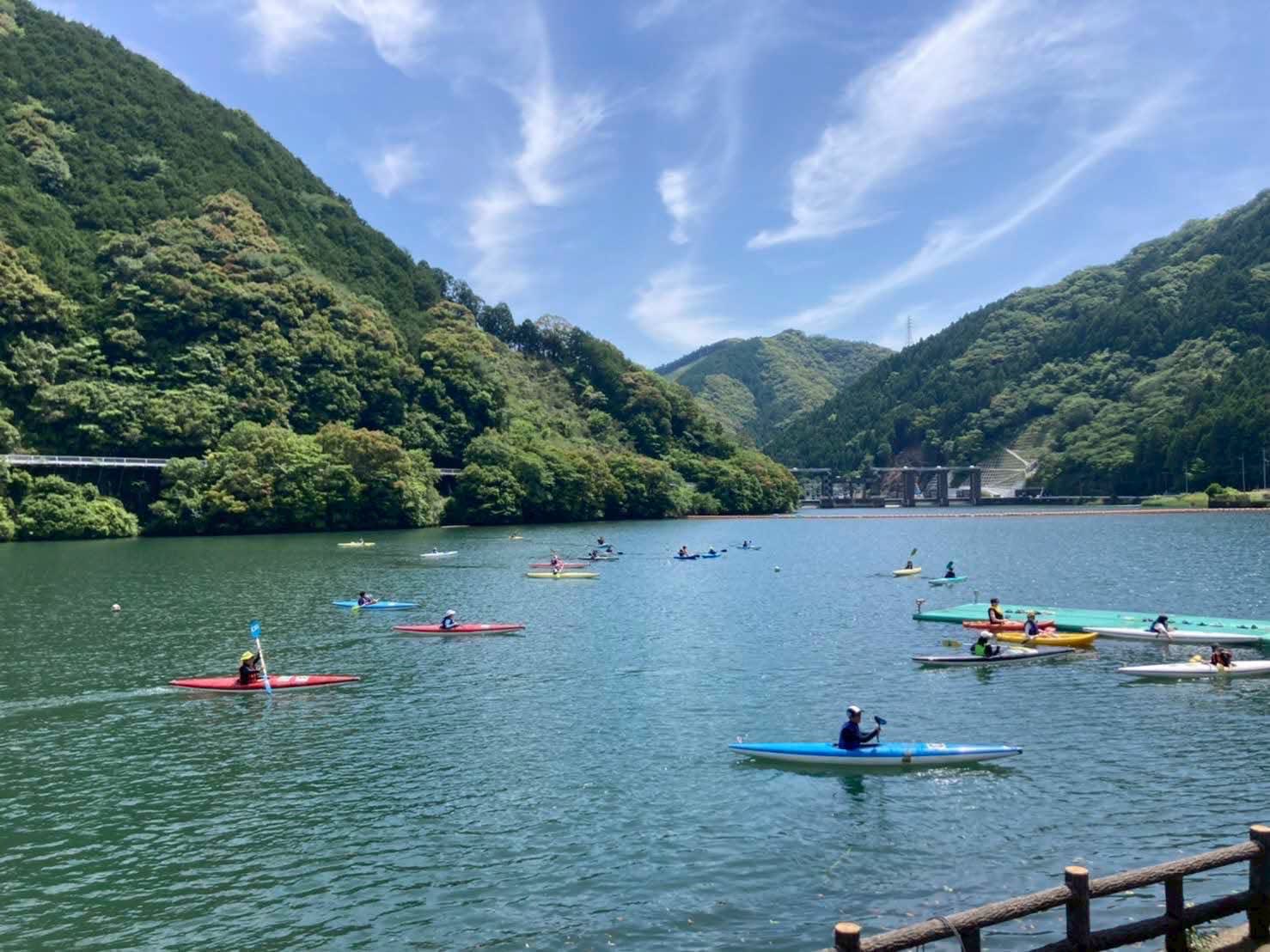 美しい川口ダム湖のロケーションで初心者から経験者まで、楽しく安全にカヌーをお楽しみいただけます。エメラルドグリーンの美しい水面は見ものです!